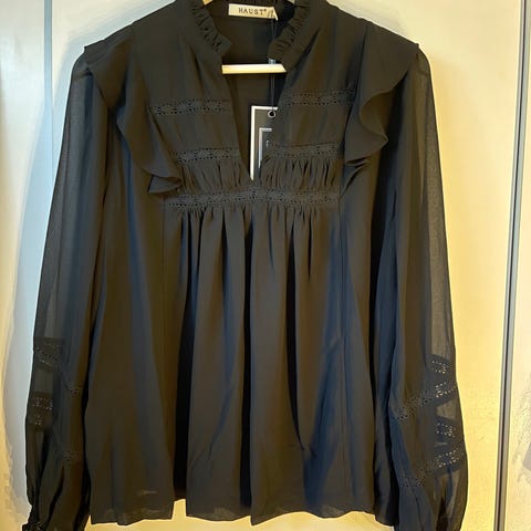 Lekker sort knytebluse fra Haust, veldig behagelig på. Flott kvalitet i bomull og rayon med stretch og litt polyester så den holder seg pen. Den er halvblank og kan kombineres med veldig mye 🤩