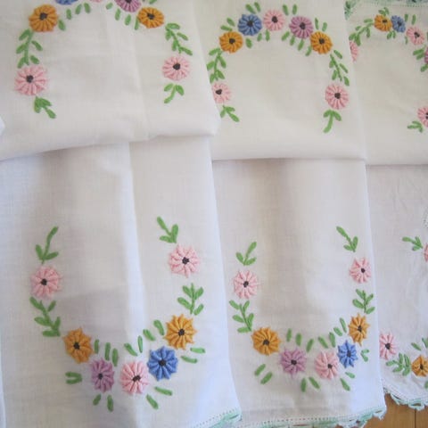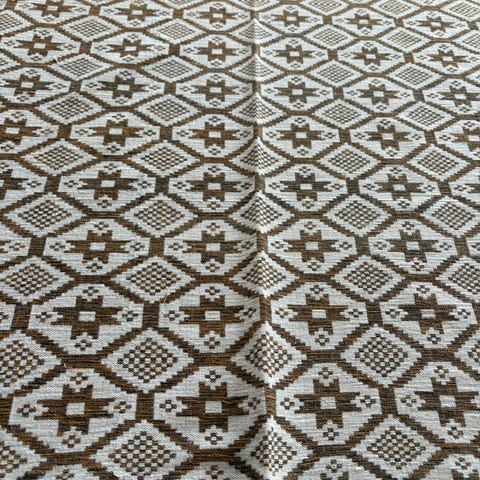 stor fin gammel duk med dekor i brun nyanser