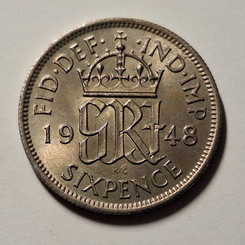 England Six Pence 1948 mynt