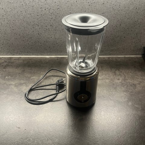 Andersson blender med kanne i glass og base i rustfritt stål. Utstyrt med kontrollknapp for justering av hastighet. Passer til miksing av ulike matvarer og drikker.