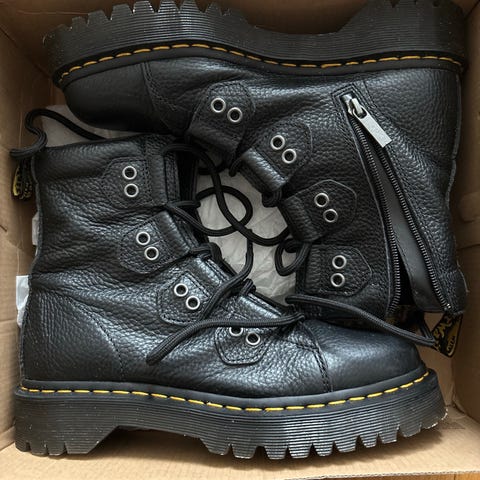 Dr. Martens støvler i størrelse 38, farge svart. Laget i slitesterkt materiale med snøring og kraftig såle, egnet for daglig bruk.