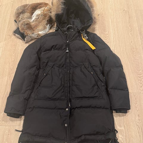 Deilig og flott høykvalitets dame parkas jakke med herte og flott pels. Designet for kalde værforhold. Laget med en innsvingt passform. Isolert med varmt dunmateriale. Brukt få ganger og ser helt ny ut.