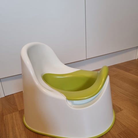 Selger en pedagogisk potte som ser ut som et ekte toalett. Perfekt for pottetrening!