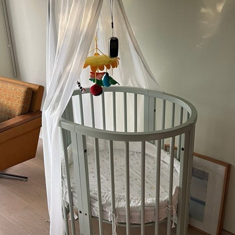 Følger med hvit sengekant fra Stokke.