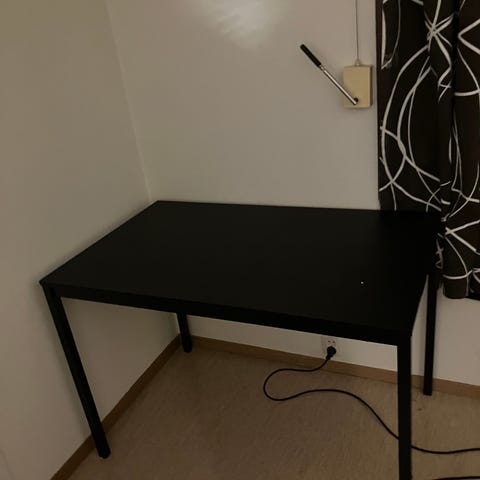 Brukt skrivebord gis bort. Et merke på midten av bordet og litt skrap i malingen på noen av kantene.