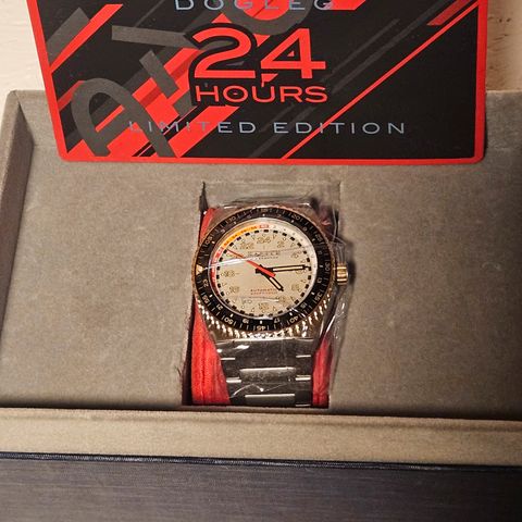 Leveres som fullt sett med original boks, sertifikat, stållenke og ekstra gummirem. Klokken fremstår i meget pen stand da den er ubrukt, kun oppbevart i eske.