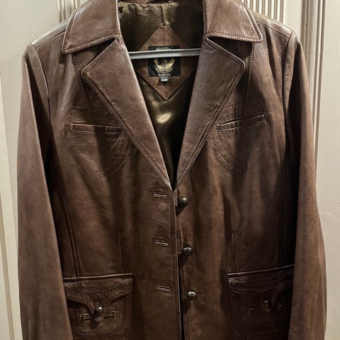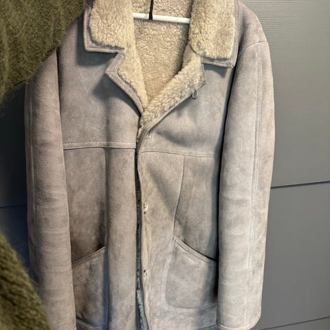 Aleksander of Norway retro jakke i skinn/lammeull for menn i størrelse 50 (M/L). Kan sendes. Selges høystbydene over kr 900,-.