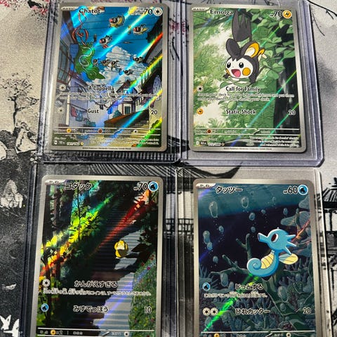 Kortene er som ny, i nydelig stand og er fra diverse Scarlet and Violet serier mellom 2023-2025 (noen Fusion strike kort kan befinne seg i boksene).