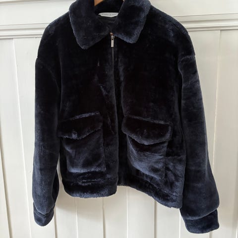 Noen bruksmerker, men syns ikke de er synlig ved bruk. Tatt bilder av de. Noe sminke på krage, mulig det går bort i vask. En liten rift på innside ved knapper, og bruksmerke på innside av jakke som også mulig går bort i vask.
