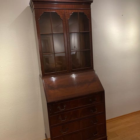 Søkeord: bokskattoll, sekretær, sekretærskap, skrivekommode, skrivepult med skap, bokskap med skriveklaff, vitrineskap med skrivepult, kombinasjonsmøbel, georgiansk stil, georgian, engelsk stil, engelsk møbel, klassisk stil, historiserende stil, tidlig 1900-tall, sent 1800-tall, edvardiansk, tradisjonell engelsk, herskapelig stil, bibliotekstil, mahogny, mahognifinér, mørkt tre, finérarbeid, intarsia, geometriske sprosser, glassdører, profilert gesims, håndverk, kvalitetsmøbel, kontormøbel, hjemmekontor, bibliotek, stue, kontor, skriveplass, oppbevaring bøker, oppbevaring dokumenter, antikk møbel, antikvitet, vintage, klassisk møbel, gammelt møbel, møbel med historie, eldre møbel, pent brukt, klassisk interiør, tradisjonelt interiør, herskapelig interiør, britisk interiør, elegant, tidløst, statement piece, old charm, nostalgisk, sofistikert, engelsk antikk, britisk møbel, antikke møbler, antikk sekretær, klassisk skrivebord, dekorativt møbel, samlermøbel