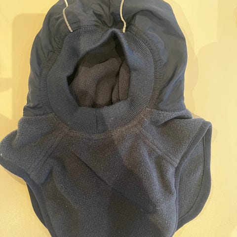 Balaclava fra Norheim i str 52. Fleecestoff inni og teknisk materiale på selve hodet som gjør at den tåler litt regn dersom det regner. Ble brukt veldig lite.