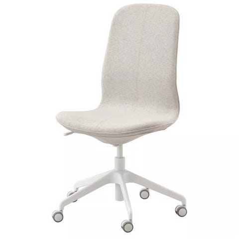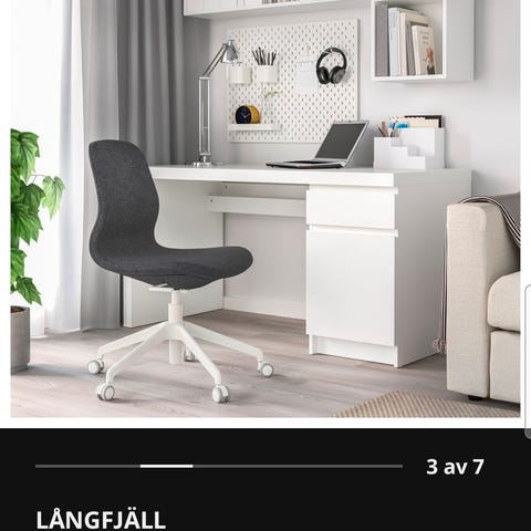 Hvit LÅNGFJÄLL kontorstol med Gunnared beige trekk og armlener selges. Setehøyde kan justeres (43 – 53 cm).