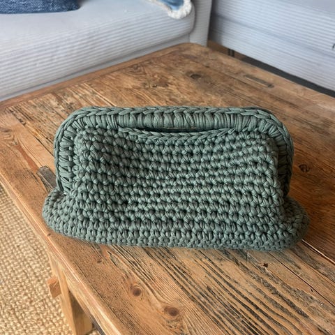 Hjemmeheklet clutch i fargen sølv. Plass til masse kan også brukes som sminkemappe!