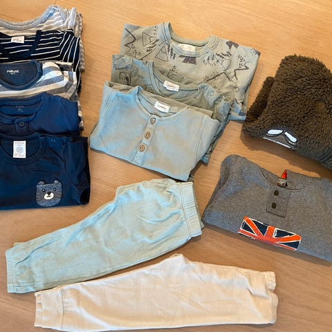 Selger en klespakke i størrelse 86, totalt 17 plagg, brukt av ett barn.