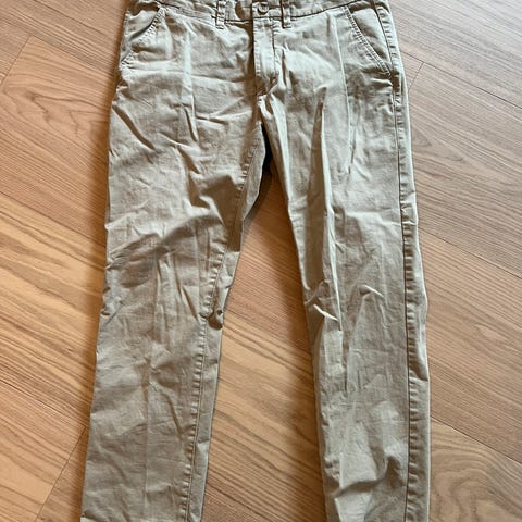 Penbukser brukt 2-3 ganger av ungdom. Str 29/32 fra Dressmann - men brukt av slank gutt 14 år. Mørk grå farge i solid stoff som minner om ull (men er en blanding av viskose og polyester). Veldig slim fit. #penbukse