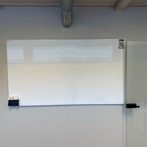 Ukentlig planlegger whiteboard med viskelær. Tavlen har kolonner for ukedager fra mandag til søndag og flere rader for notater eller oppgaver. Egnet for organisering av ukentlige planer og aktiviteter.