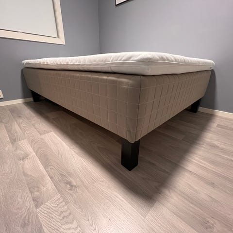 Ikea Skårer 140x200 med tilhørende overmadrass og bein selges. Ingen skader på seng, og overmadrass er i god stand. Står litt kronglete plassert så bilder er funnet på nett. Pris kan diskuteres.