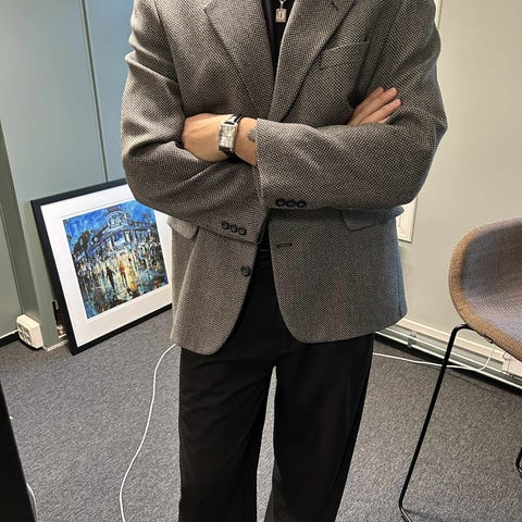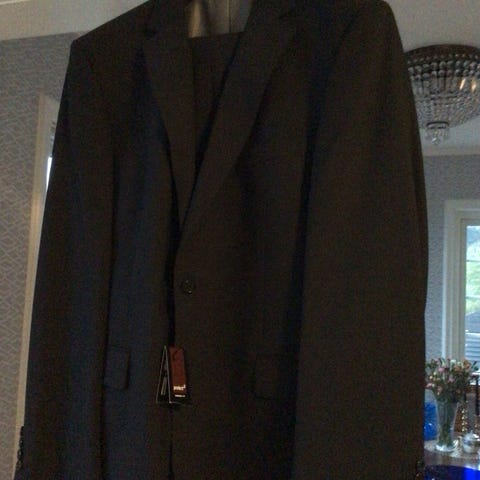 Dressjakken er i str 52. Blanding av polyester og ull.