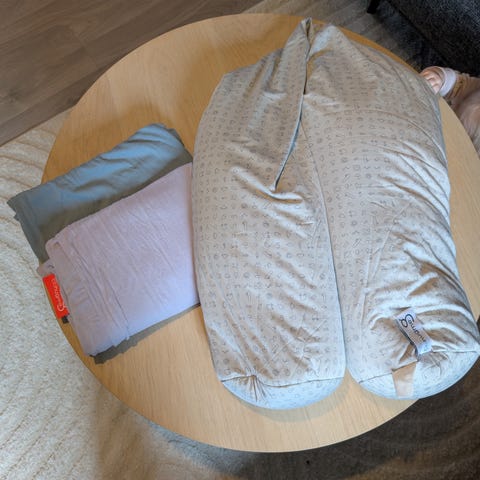 Godt brukt Bbhugme gravidpute i beige farge selges.