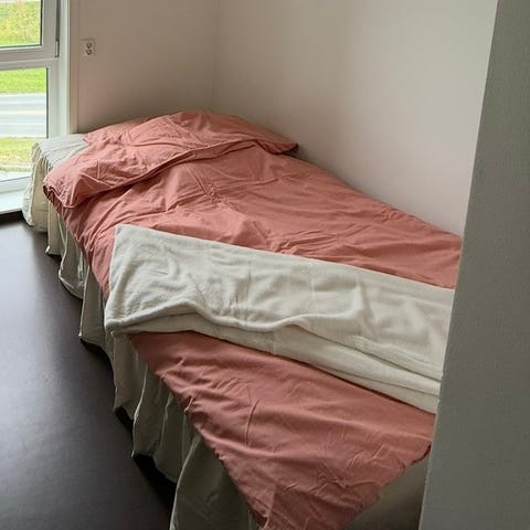 Madrass og overmadrass er veldig god, nyvasket trekk på overmadrassen men fortsatt noen flekker.