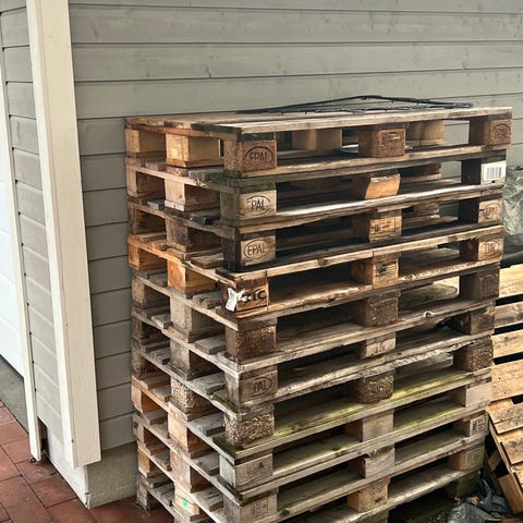 Trehylle Euro-pall laget av tre, standard størrelse brukt for lagring og transport.