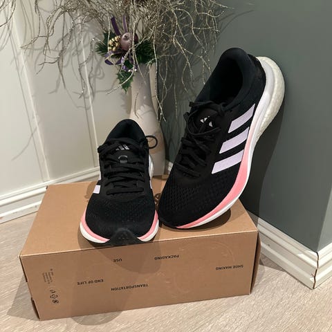 Hoka løpesko i størrelse 36 2/3, i oransje farge. Veldig lite brukt, og kun brukt innendørs på mølle.