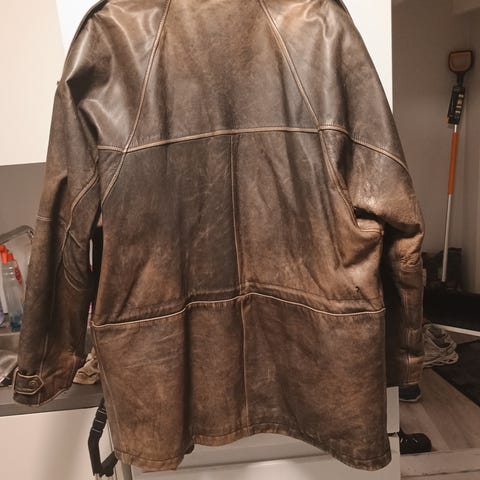 Selger min vintage skinnjake Str. XL grunnet for lite bruk. Jeg er 193cm og jaken passer meg supert!