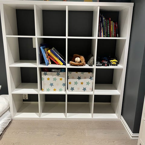 KALLAX hylle. Kan brukes stående eller liggende. Noen bruksmerker (se bilde)