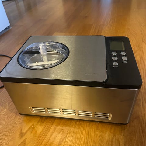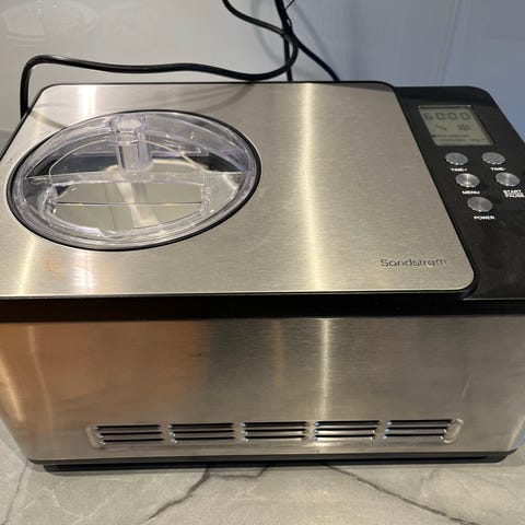 Izen1 iskremmaskin i hvit farge. Inkluderer isbøtte, lokk med visp, vrukermanual og strømkabel. Egnet for å lage hjemmelaget iskrem. Brukt en gang.