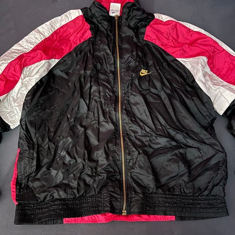 Polyester, veldig stor størrelse ca 3XL og lang, kult design med flagg fra USA og Mexico. Ingen lommer. Butterbean sin størrelse sånn ca. Passer en på 180-200cm og 120kg+-