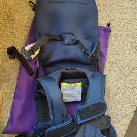 Det er to ulike deler å feste på toppen, en til de minste for feste med klipslås, og den neste delen som er for eldre barn hvor de i hovedsak er festet med borrelås rundt anklene.