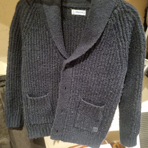 Den er brukt av ett barn men har en liten rift foran og en flekk på erme som ser ut som maling. Ellers hel og fin.