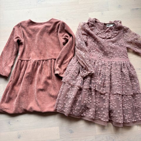 Lil'Atelier kjole i størrelse 110, designet for jenter. Kjolen har rød farge og er laget av bomullsmateriale.