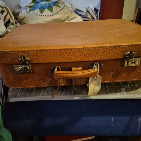 Selger en vintage / retro brun skinn koffert. Medfølger to stk nøkler.
