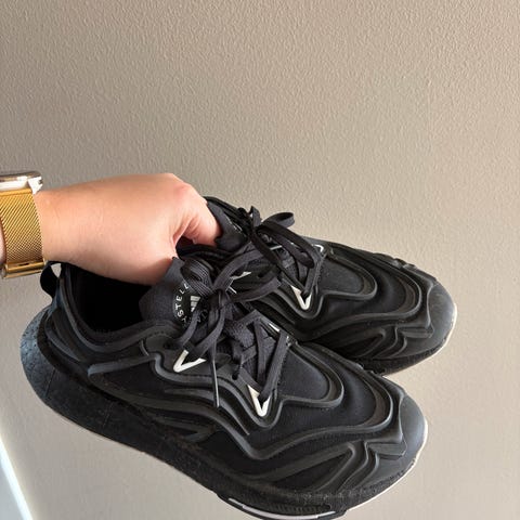 Sneakers joggesko i hvit farge, størrelse 39. Skoene har en tykk, mønstret såle for godt grep og er laget med detaljer i syntetisk materiale. Designet for daglig bruk og komfort inne eller ute.