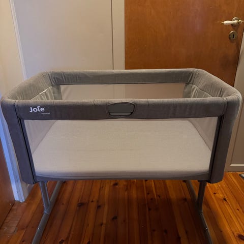 Svart joie bedside crib, lite og ikke synlig brukt, da vår baby syntes det var en bedre løsning å sove oppå mamma.