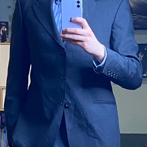 Denne dressjakken er sydd i Super 180’s virgin wool med en fibertykkelse på kun 14,5 mikron. Det betyr ekstremt fin ull, valgt for sin mykhet, lette struktur og naturlige glans. Stoffet faller pent, puster godt og føles merkbart mer luksuriøst enn standard dressull. Samtidig er det slitesterkt nok til faktisk bruk, ikke bare spesielle anledninger.