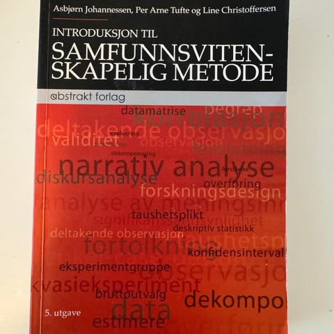Introduksjon til sammfunnsvitenskeplig metode. Boken er tydelig brukt, og enkelte deler av boken henger ikke lenger så godt i bindet. Den fungerer likevel godt så lenge man er varsom. Boken er bl.a. brukt i emne MET103.