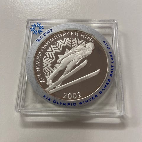 Pent motiv med alpintema og høy sølvvekt. Fin mynt for både OL-samlere og sølvinteresserte.