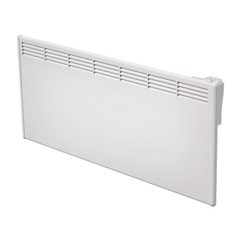 Mill panelovn med hvit overflate i glass. Elektrisk oppvarmingsenhet som kan monteres på vegg. Designet for effektiv romoppvarming.