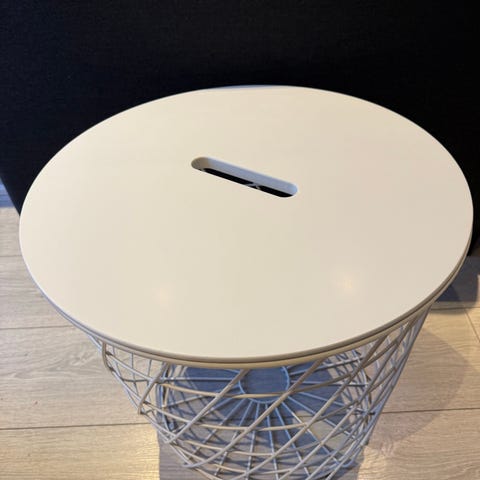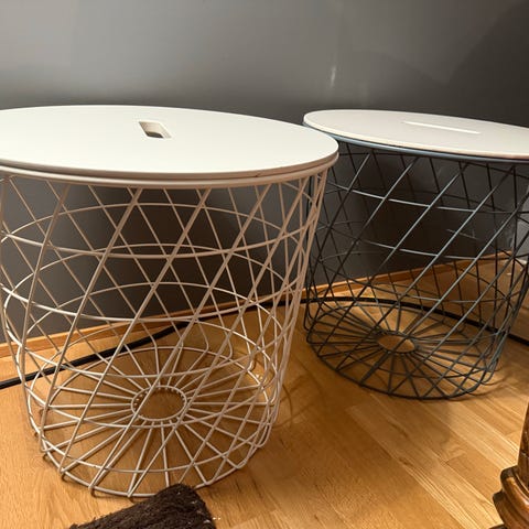 Selger et oppbevaringsbord fra IKEA. Den kan brukes som oppbevaring til pledd og puter, eller som et salongbord, sidebord eller nattbord.