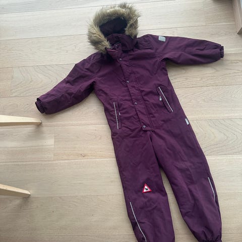 Selger en reima vinterdress i størrelse 122. Mye dress igjen, men har noe slitasje etter bruk. Dressen er vasket og i orden. Mangler reimer til under skoen.
