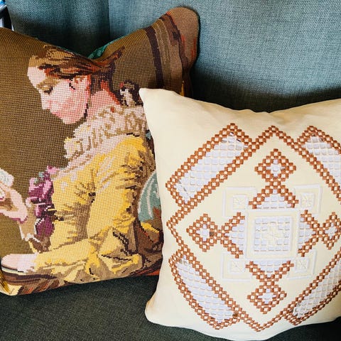 To stk vintage broderte puter i litt ulik str selges samlet. Nydelige farger!