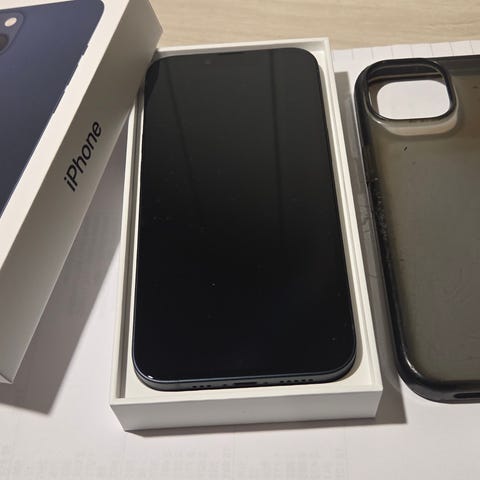 Pent brukt iPhone 13 128GB (blå). Kjøpt via Finn Nybrukt i april 2025, med spesifikasjoner "pent brukt" og "minst 85% batteri" den gangen. Brukt veldig pent og lite siden det og selges nå videre i god stand. Har ikke hatt noen problemer med lading eller batteri.