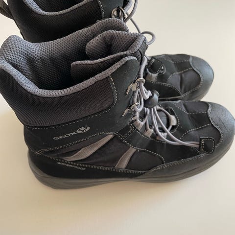 Geox nye vinterstøvler til barn størrelse 39 i svart farge. Skoene har vanntett materiale og er designet for barn i størrelse 39.