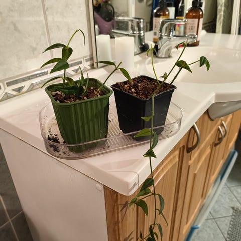 Selger potter med etablerte stiklinger av vakre Hoya Bella. Planten kommer med nydelige blomster et par ganger i året så lenge den holdes jevnt fuktig. Ungplanter kan bruke opp til et års tid før de produserer blomster. Enkel å ta stiklinger av og vokser raskt. Dette er absolutt en av mine favorittplanter! 🌸