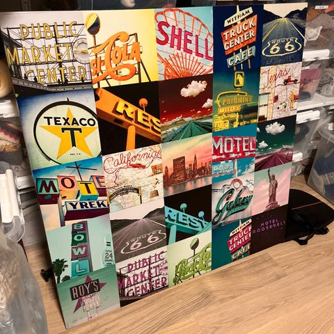 2 gamle skapdører brukt som rammer