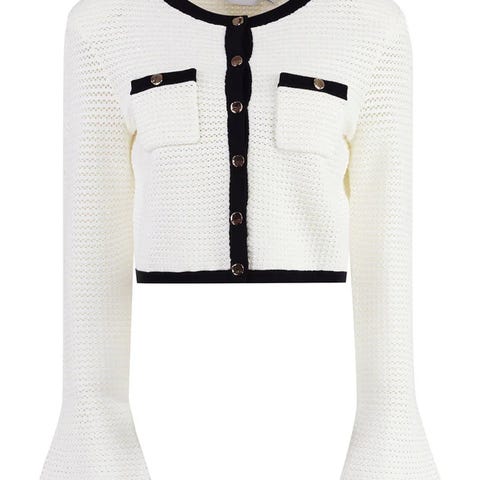 Self-Portrait Cream Sequin Pussy Bow Cardigan str. XS