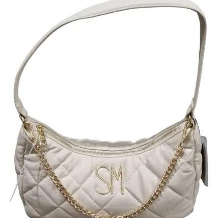 Steve Madden Dame veske laget i stoffmateriale. Vesken har en gul farge og en håndstropp. Den har glidelås og dekorative detaljer med merkevarelogo.