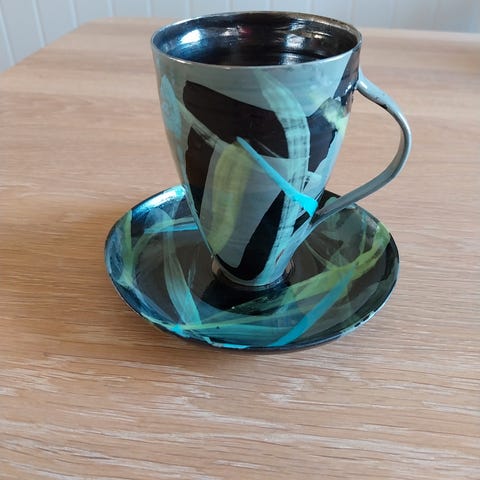 Søt liten mugge med hank i keramikk. Egnet til servering av drikke eller som dekorativ gjenstand.
